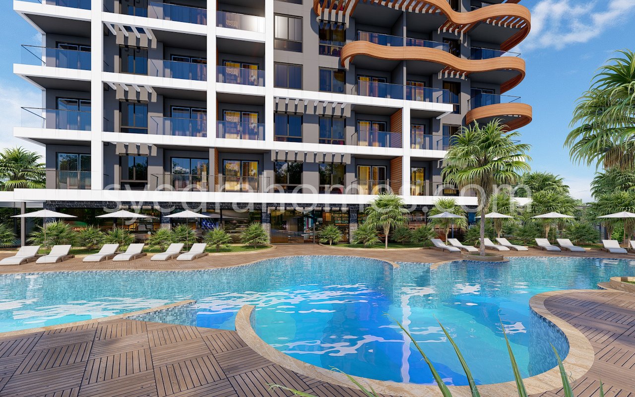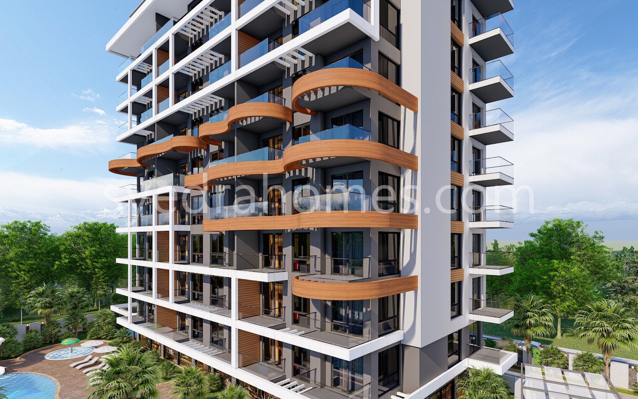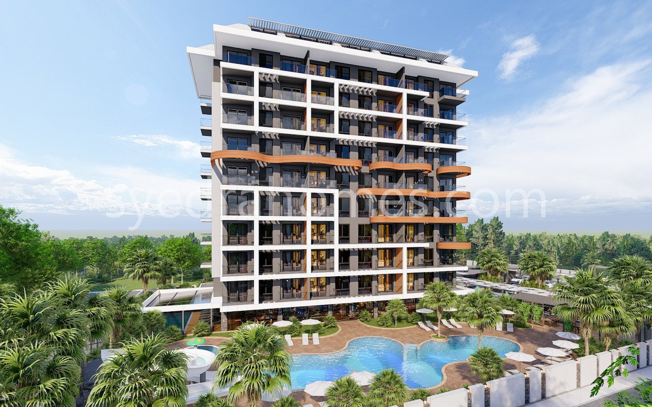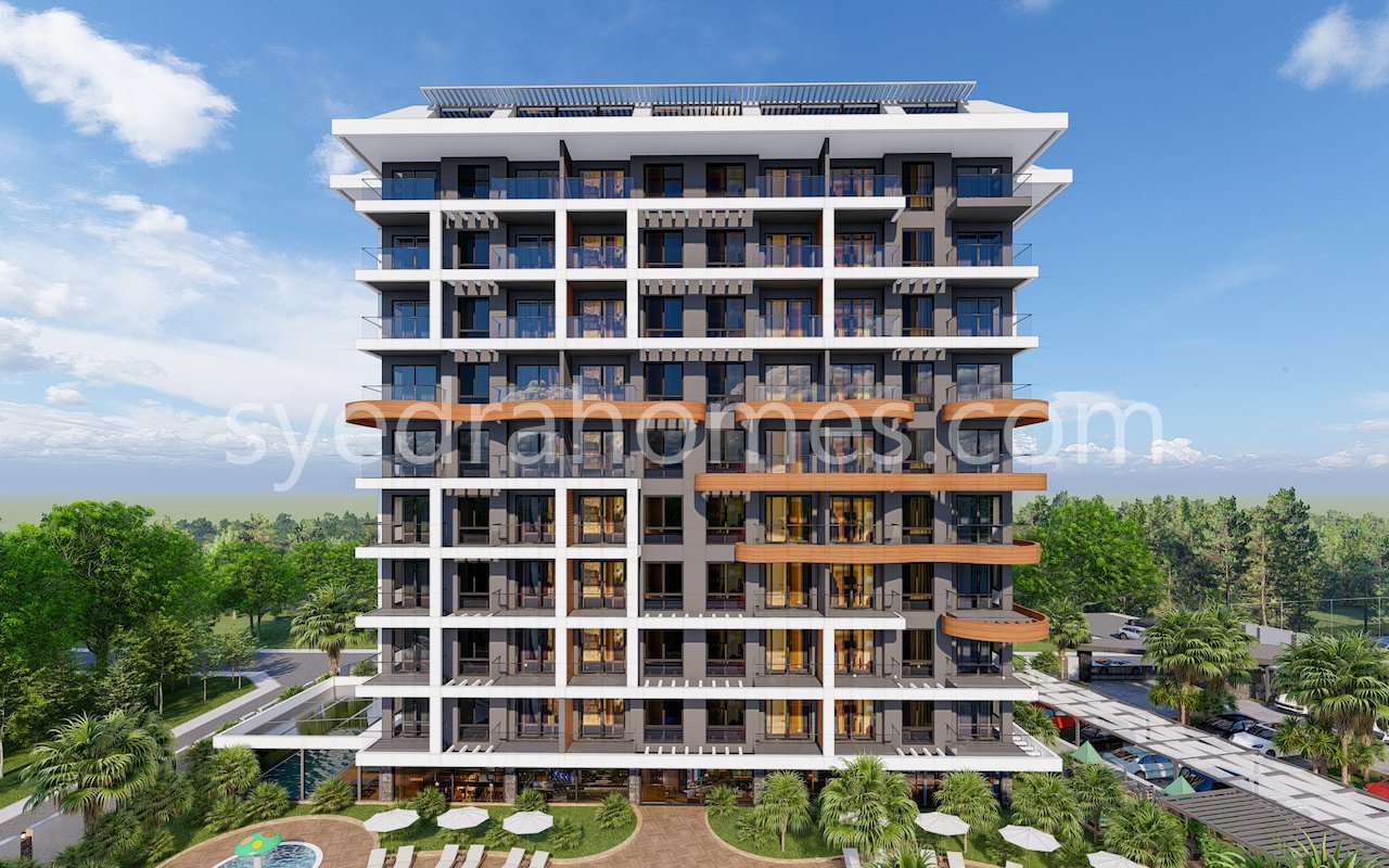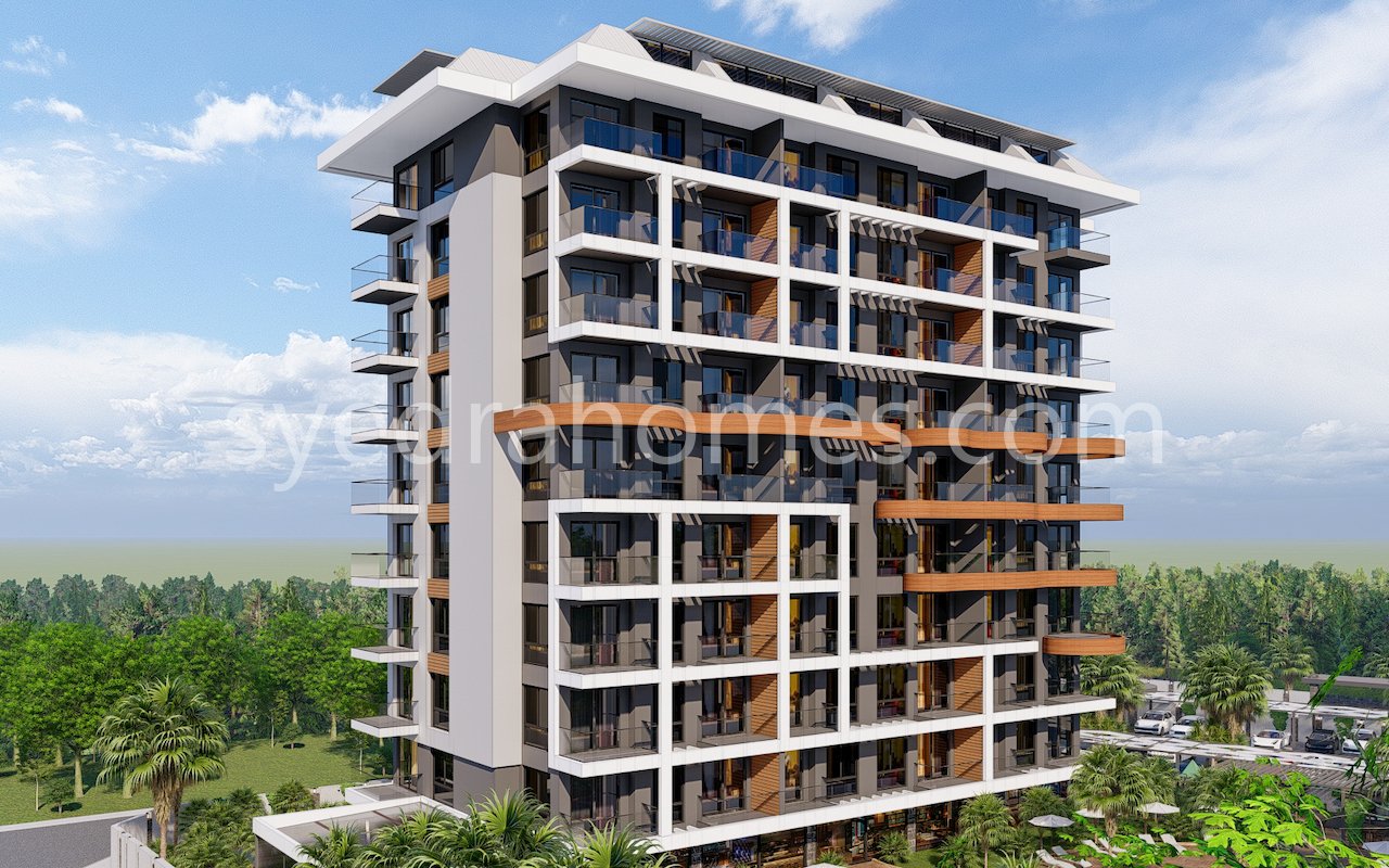 Комплекс будет расположен на территории 3000 кв.м., состоять из одного 9-ти этажного здания, представлены апартаменты 1+1 и дуплексы планировки 2+1 и 3+1, общий метраж от 63 до 143 кв.м.